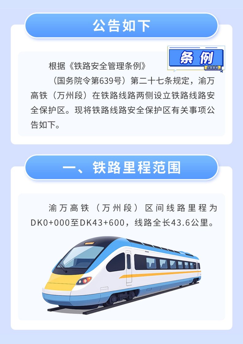 【一图读懂】重庆市万州区人民政府关于划定渝万高速铁路(万州段)线路安全保护区的公告
