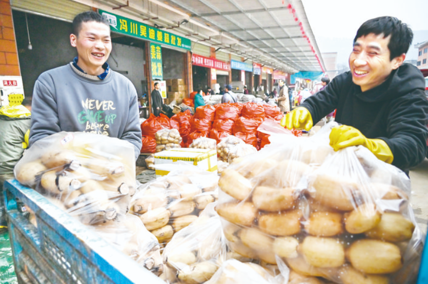 近日,万州区百安港农产品批发市场,商家忙着搬运、销售蔬菜、水果等农产品。据了解,临近春节期间,百安港农产品批发市场日交易量达1400吨,各类丰富的农产品可充分保障节日期间的供应需求。 图①:喜笑颜开采购农产品。 图②:商家忙着分拣蔬菜。 记者 付作侨 摄